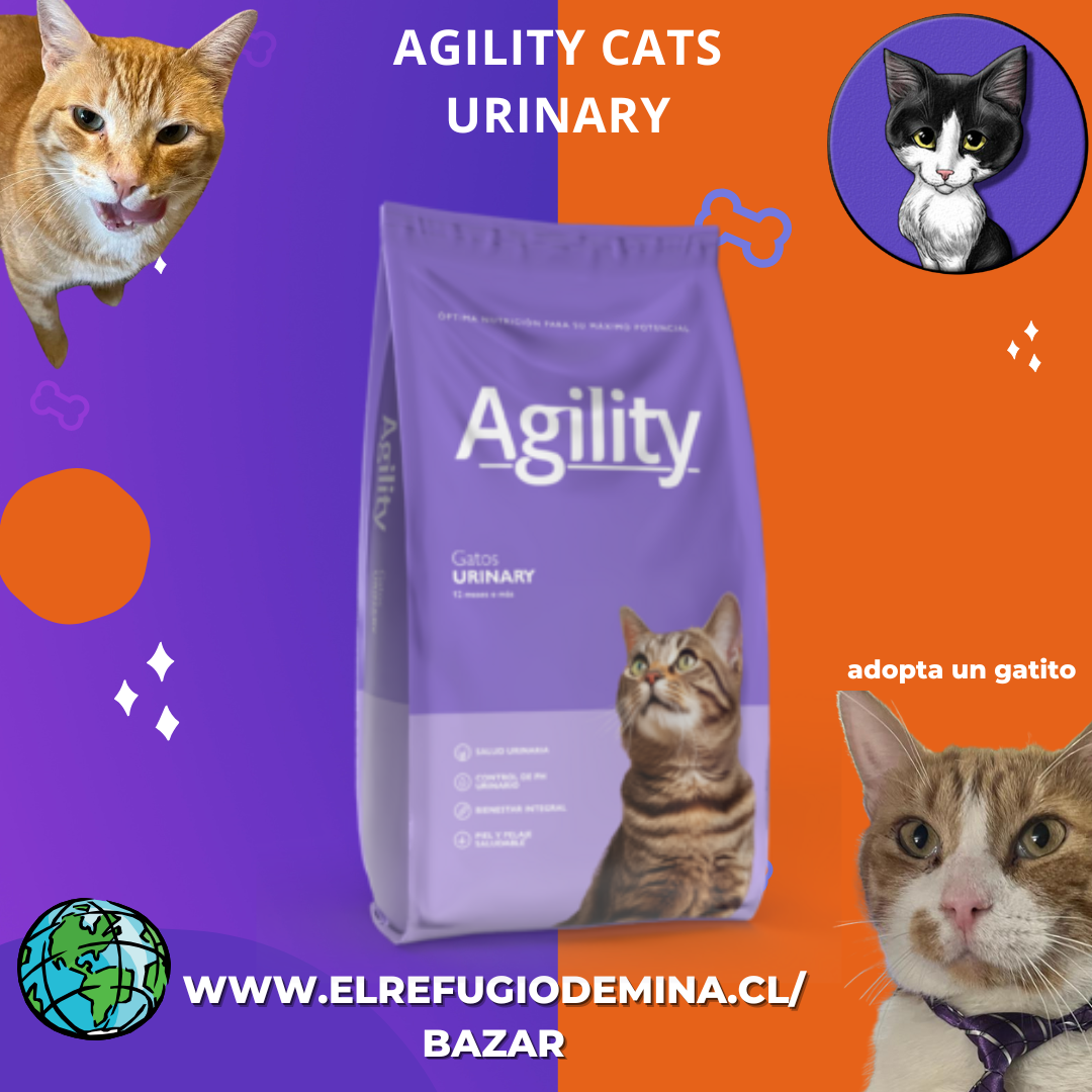 Agility Cats Urinary es la clave para la salud urinaria de tu gato adulto. Una fórmula exclusiva que no solo cubre sus necesidades nutricionales, sino que también controla el pH urinario, previene la formación de cálculos y promueve la salud del tracto urinario inferior.