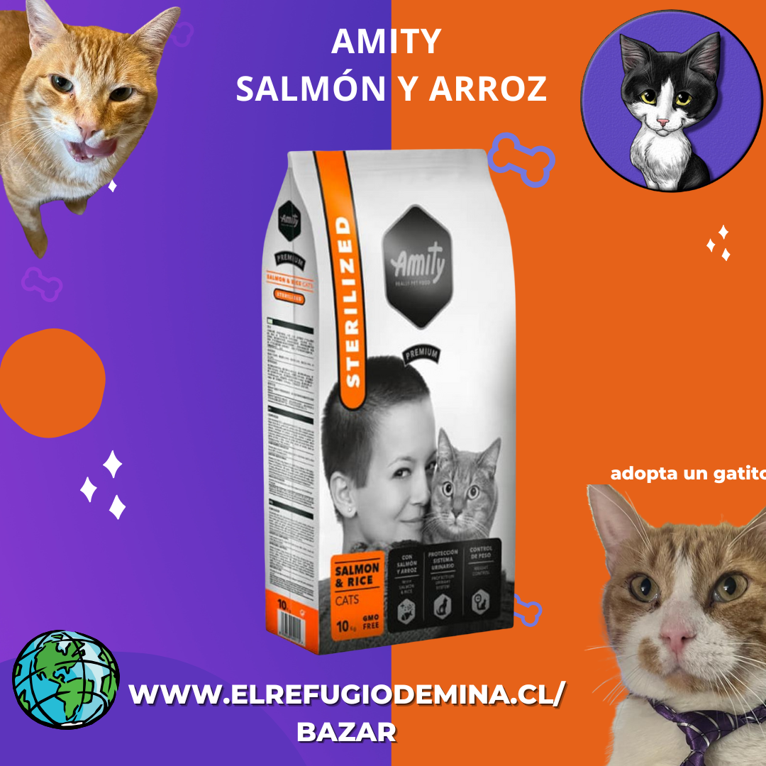 Amity Premium Salmón y Arroz para Gatos Esterilizados es un alimento completo especialmente diseñado para cuidar a tu felino tras la esterilización. Esta etapa requiere una nutrición adaptada, y la fórmula de Amity ofrece el balance perfecto entre control calórico, proteínas de alta calidad y beneficios digestivos.